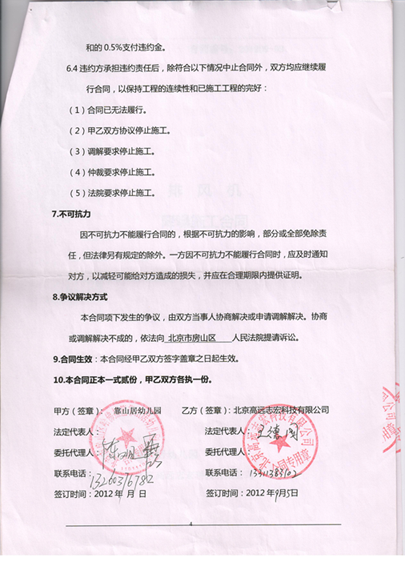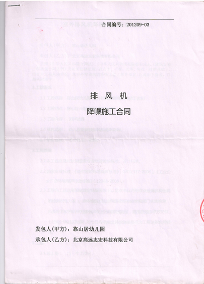 北京市靠山居幼兒園排風機降噪施工合同